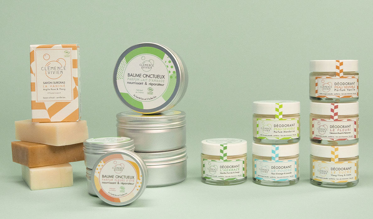Clémence & Vivien est une marque de cosmétiques 100% naturels, vegan et green fabriqués en France. Clémence & Vivien est une marque engagée qui promeut une "beauté naturelle", la durabilité de ses produits et l’éthique dans son fonctionnement. Tous les produits sont fabriqués avec des ingrédients naturels et majoritairement biologiques. On vous explique pourquoi on les a choisis.