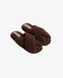 Des chaussons ouverts 100% laine de mouton marron chocolat.