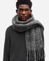 Une écharpe à carreaux et à franges fabriquée à partir de mohair, laine d'alpaga et laine.