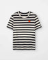Un T-shirt à rayures en coton biologique et recyclé écru et noir.