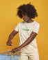Pour la simplicité de sa coupe à col rond et la touche printanière de son imprimé vert. Le plus ? Ses surpiqûres vertes sur les ourlets des manches et du col.